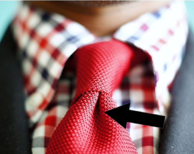 - Para apertar o nó da gravata, use a covinha apertando-a para ajustar.