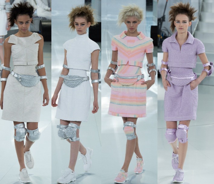 Nos anos 80, a pochete era um objeto prático mas sem glamour, era um objeto grande e desengonçado. Em 2014, a marca Chanel tentou relançar essa moda mas usando o modelo original mas com outras texturas, cores, brilhos. Apesar de ter tido uma boa resposta da parte do público, a resposta não foi tão boa assim e a moda não pegou.