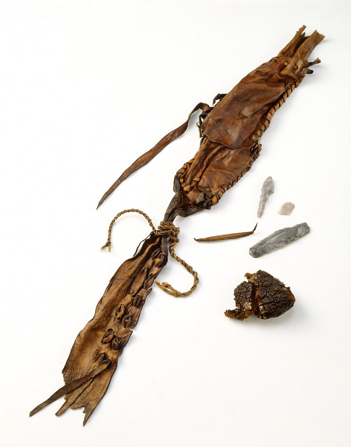 Em 1991, um casal de alpinistas encontraram uma múmia congelada, possivelmente com 5.300 anos, nos Alpes Ötzi entre a Italia e a Austria e junto a sua vestimenta se encontrava um tipo de bolsa com alguns objetos usados na caça.