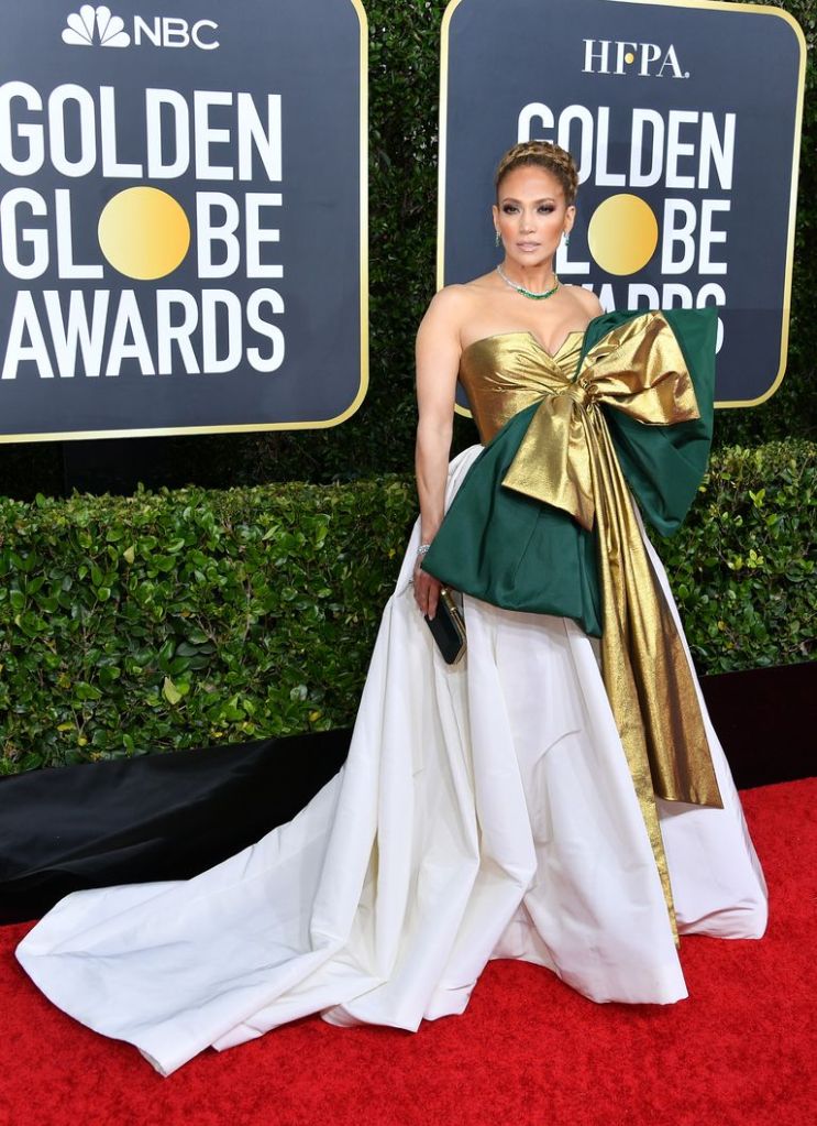 E por fim os mais “zoados”, digamos assim, foi o look de Jennifer Lopez da grife Valentino Couture, chamada carinhosamente de J.Lo, foi eleito o “Maior Flex” pois segundo a revista Cosmopolitan o modelito serve tanto pra vestir quanto pra ser caixa do troféu.