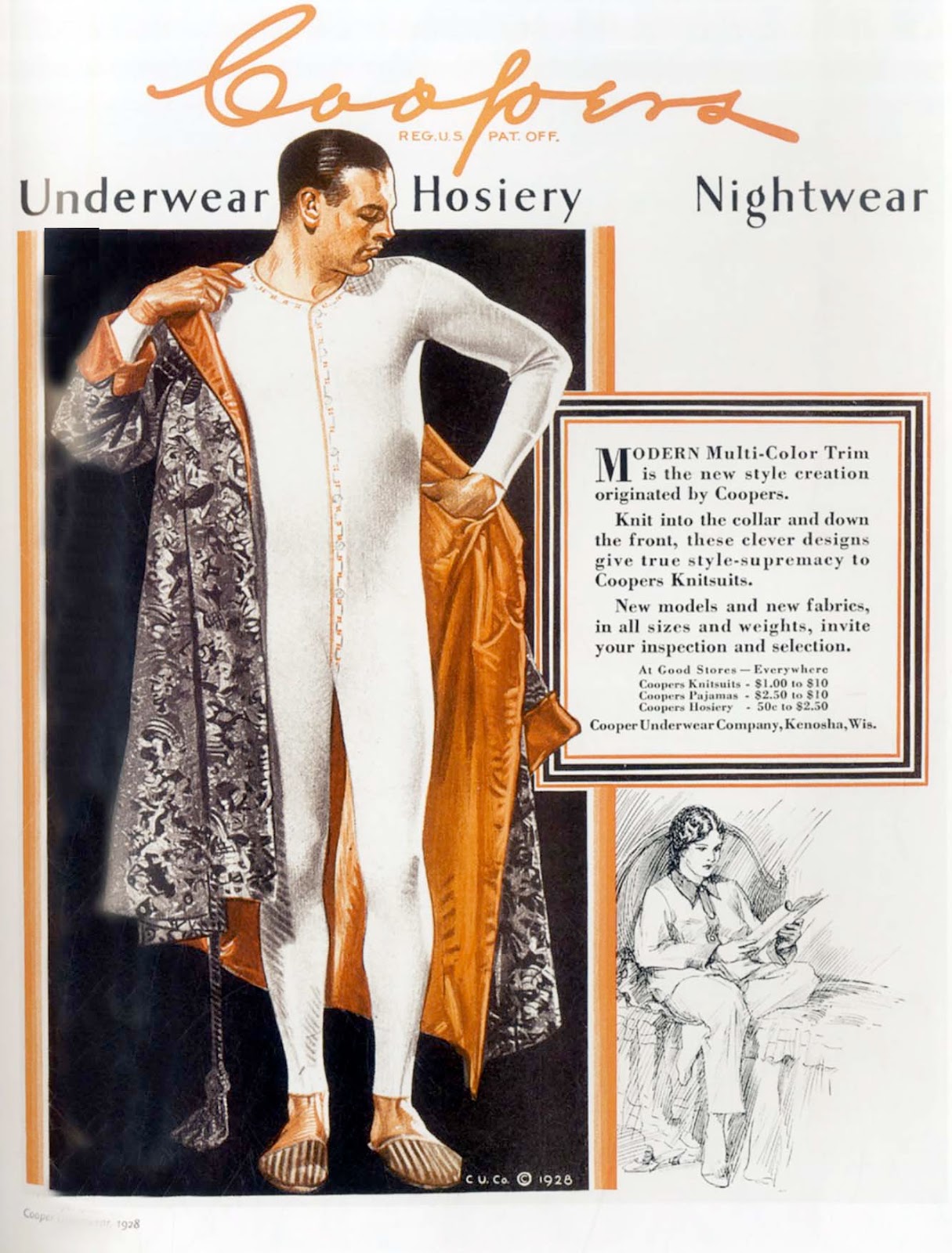 Primeira foto: Anúncio da Cooper Underwear Company/ Segunda foto: Marinheiro da Marinha Mercante dos EUA em 1944