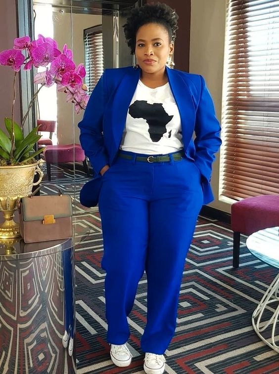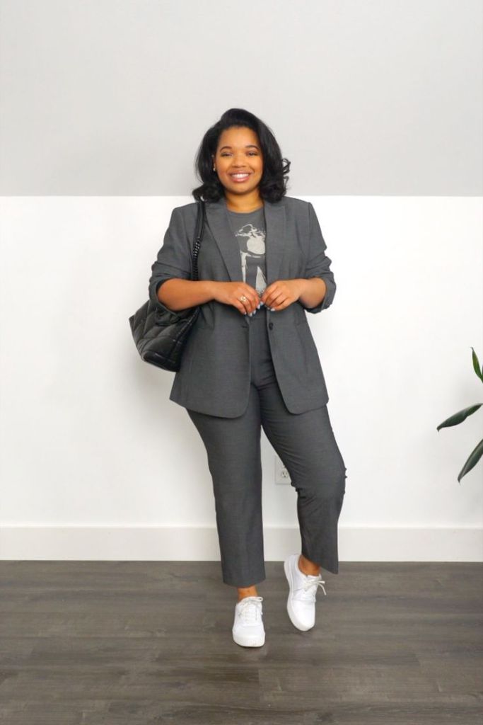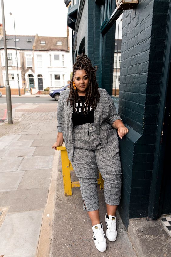 - Com terninhos: apesar de ser mais social, o “terninho” pode ser combinado com camiseta, seja ela estampada ou não. Para uma linha mais social, usa-se sapatos sociais, para um look mais despojado, casual elegante, usa-se sapatos menos sociais.