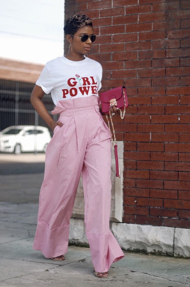 A resposta é: DEPENDE! Depende de como compor o look! Lembrando que a camiseta, estampada ou não, configura um visual mais casual por isso não seria a melhor escolha para certas ocasiões onde se pede um vestuário mais formal ou social. Para o trabalho, desde que seja liberado, a camiseta estampada pode compor looks bem modernos e ser um casual elegante, por isso, eis algumas dicas: