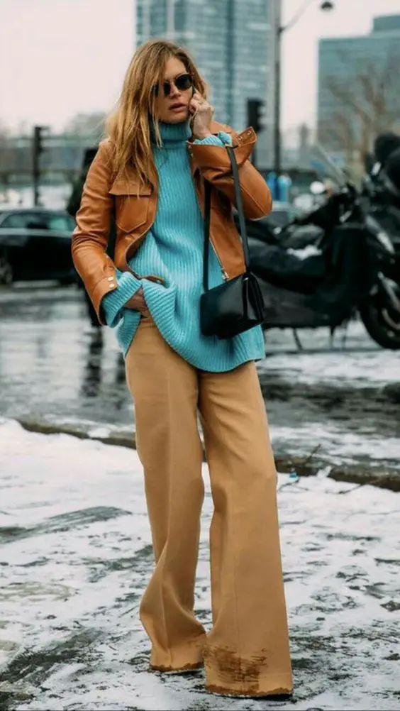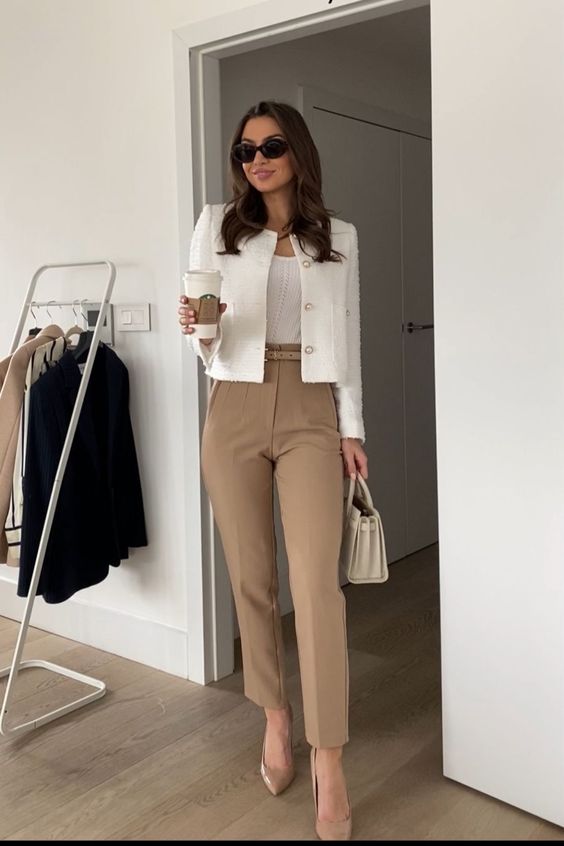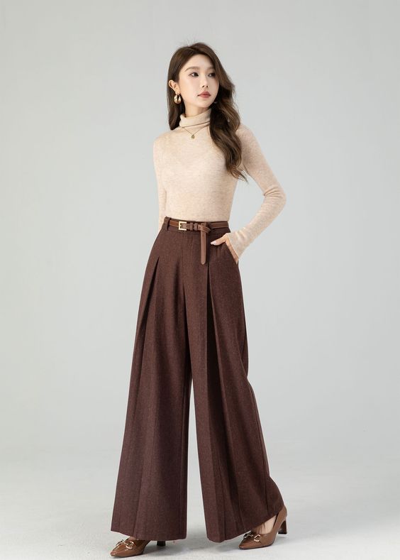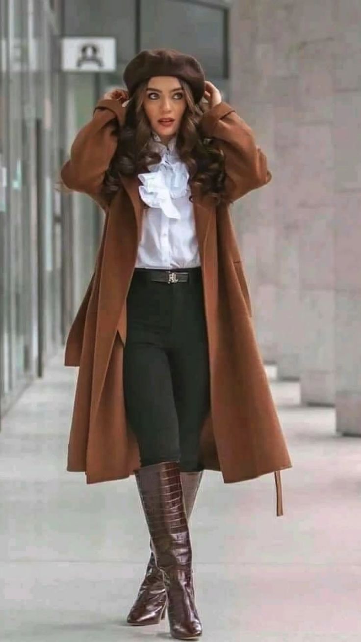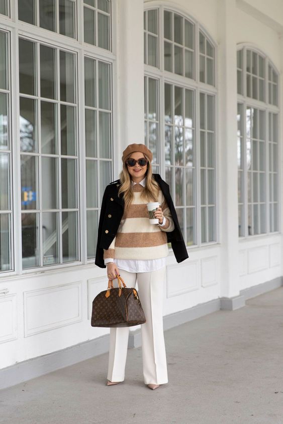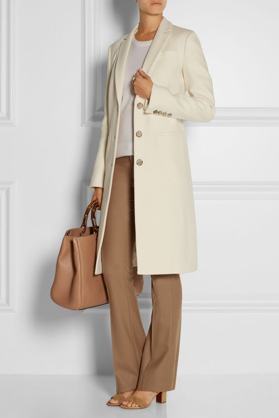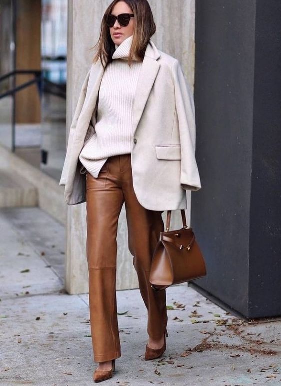 - Creme: Calças marrom com um casaco creme são perfeitas para um look de inverno sofisticado.