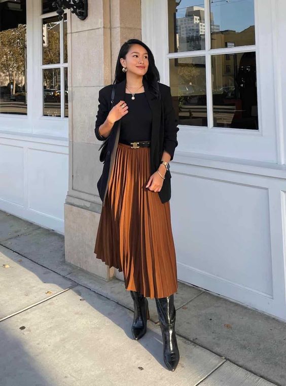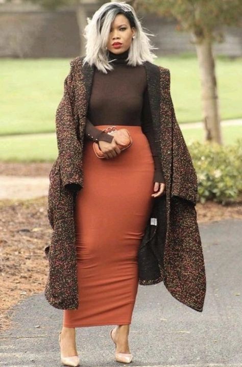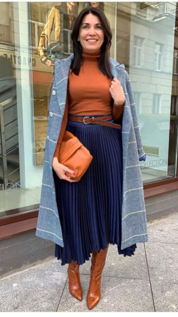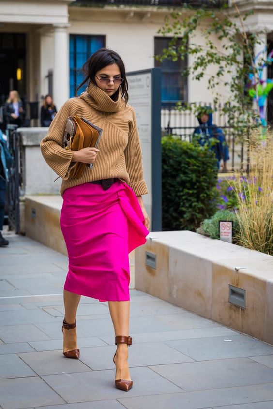 - Bege: Um suéter bege com uma saia marrom cria um visual harmonioso e aconchegante.