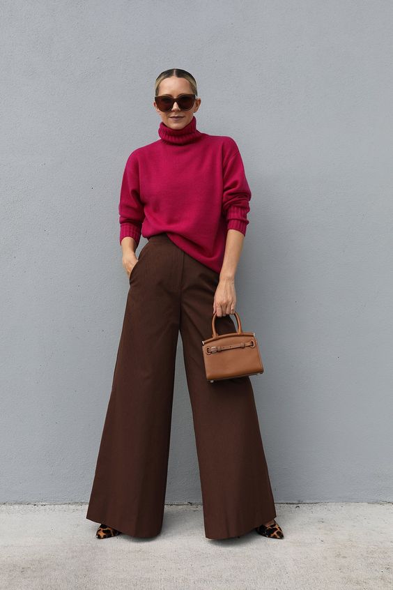 - Rosa Escuro/ Fuscia: Combinar marrom com rosa escuro ou fucsia, cria um contraste vibrante e interessante e ao mesmo tempo pode ser ousado e sofisticado.