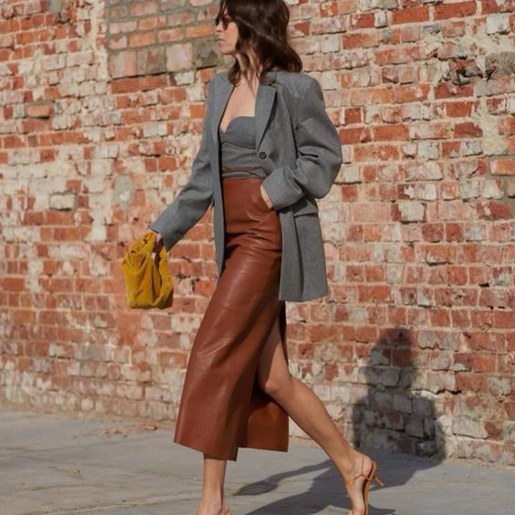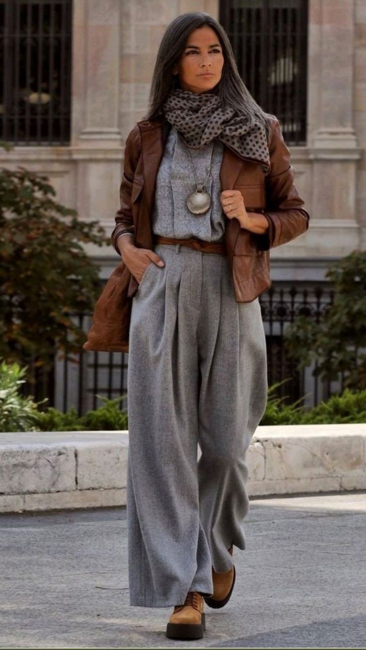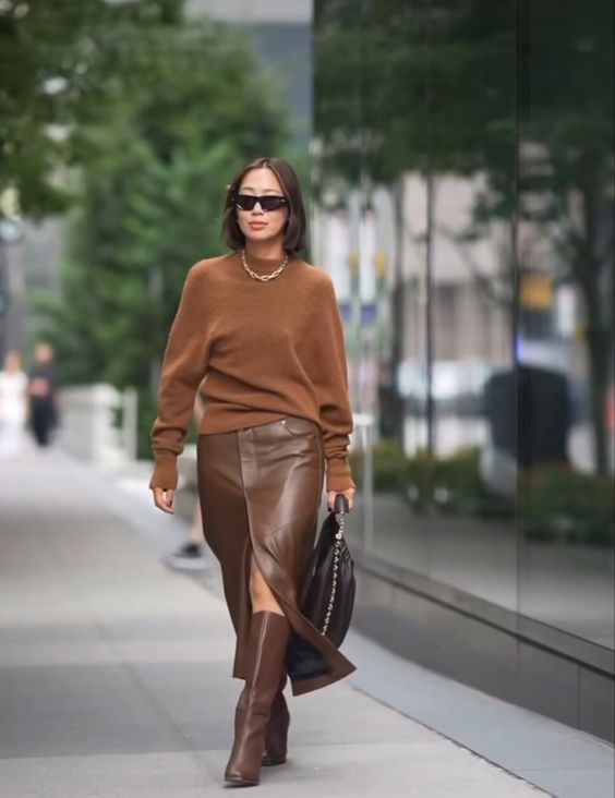 - Aposte em Texturas: Misture diferentes texturas para adicionar profundidade ao seu look. Combine couro marrom com tecidos de lã ou seda.