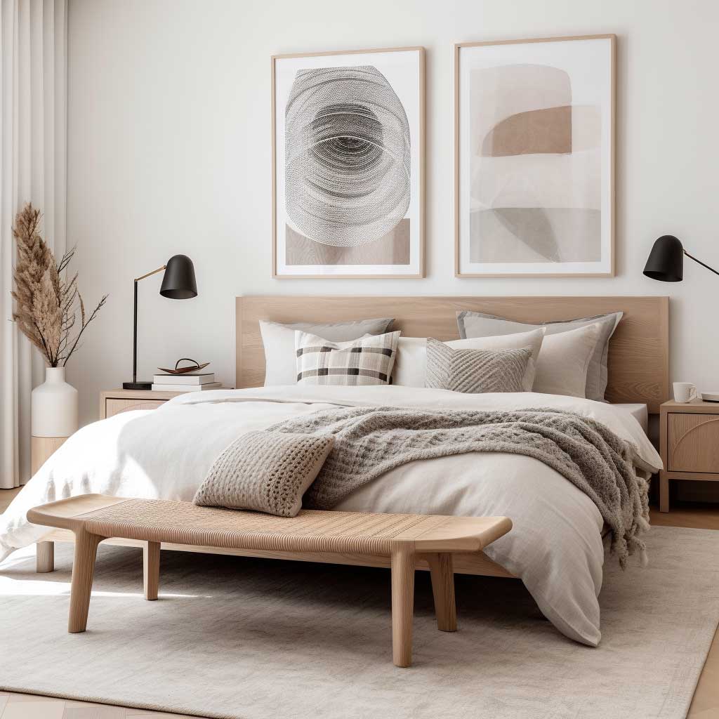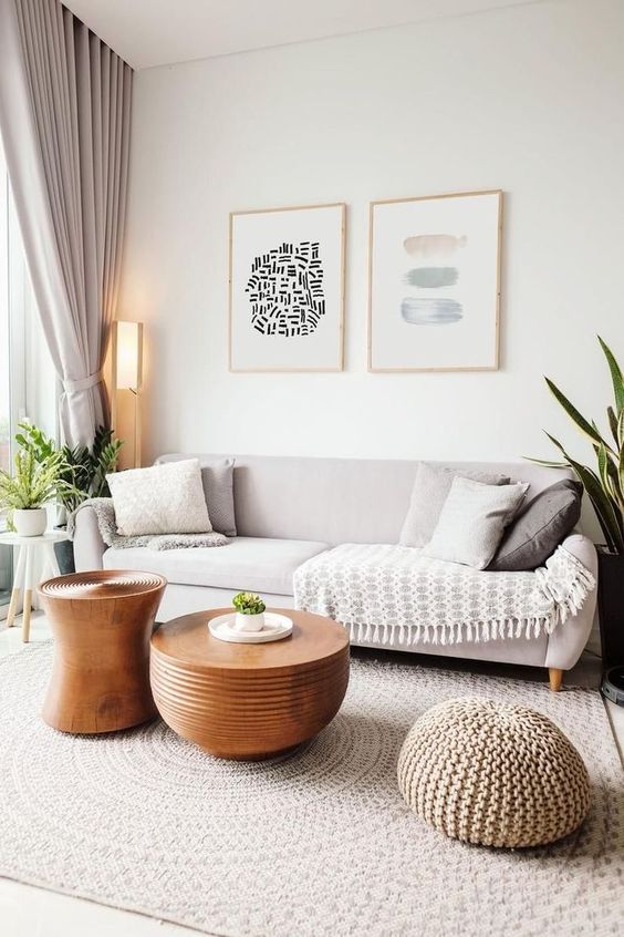2. Invista em Móveis de Linhas Simples Procure por móveis com design minimalista e funcional. Peças em madeira clara são ideais.