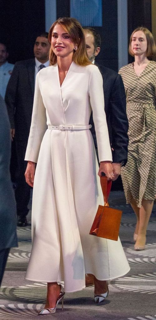 Uma outra personalidade real admirável é a rainha Rania da Jordânia. Por si só, ela é muito discreta e podemos notar através dos seus looks, que ela tem um estilo mais clássico com uma preferência pelo romântico.